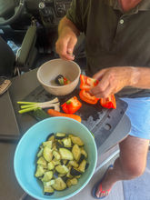 Es gibt den berühmten "Omnia" Backofen, der uns nach langem hin und her allmählich überzeugt. Erstaunlich was darin alles gelingt. Unser Standard ist Gemüse in jeglicher Zusammensetzung. Mit Kräutern, Gewürzen und Olivenöl. Gelingt immer, ist lecker und geht schnell. Erwähnenswert und neuer Liebling ist unser "Nomadiq" Grill. Er ist super stabil, handlich, gut zu verstauen und bietet nicht nur eine große Grillfläche sondern auch eine austauschbare Plancha. Hier gelingt sogar ein "Cote de Boeuf". (Und Frites im Omnia:-))