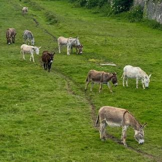 Und dann haben wir noch die Esel entdeckt: Eine ganze Herde wohnt auf der Wiese rund um das Festungsgelände in Saint Martin. Wir erfahren, der Esel wurde früher bei der Salzgewinnung eingesetzt. Damit er nicht von den Mücken zerstochen wurde, bekam er karierte Hosenbeine an. Dieses Bild, der Esel mit den Hosen, haben ihn zum Wahrzeichen der Insel gemacht.